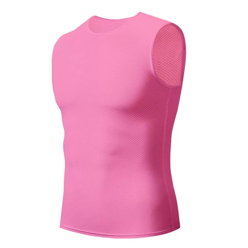 Ang walang manggas na base layer ay isang espesyal na damit na isinusuot nang direkta sa ilalim ng iyong jersey sa pagbibisikleta, sa tabi ng iyong balat. Ang pangunahing tungkulin nito ay kumilos bilang isang hadlang sa pagitan ng iyong balat at ang panlabas na layer ng iyong damit. Tinutulungan ng layer na ito na alisin ang moisture mula sa iyong katawan, kinokontrol ang temperatura ng iyong katawan, at pinipigilan ang discomfort na dulot ng friction sa pagitan ng iyong balat at ng iyong cycling jersey. Ito ay lalong mahalaga para sa mga siklista na malalayo, dahil ang chafing at labis na kahalumigmigan ay maaaring humantong sa pangangati at makaapekto sa pagganap.